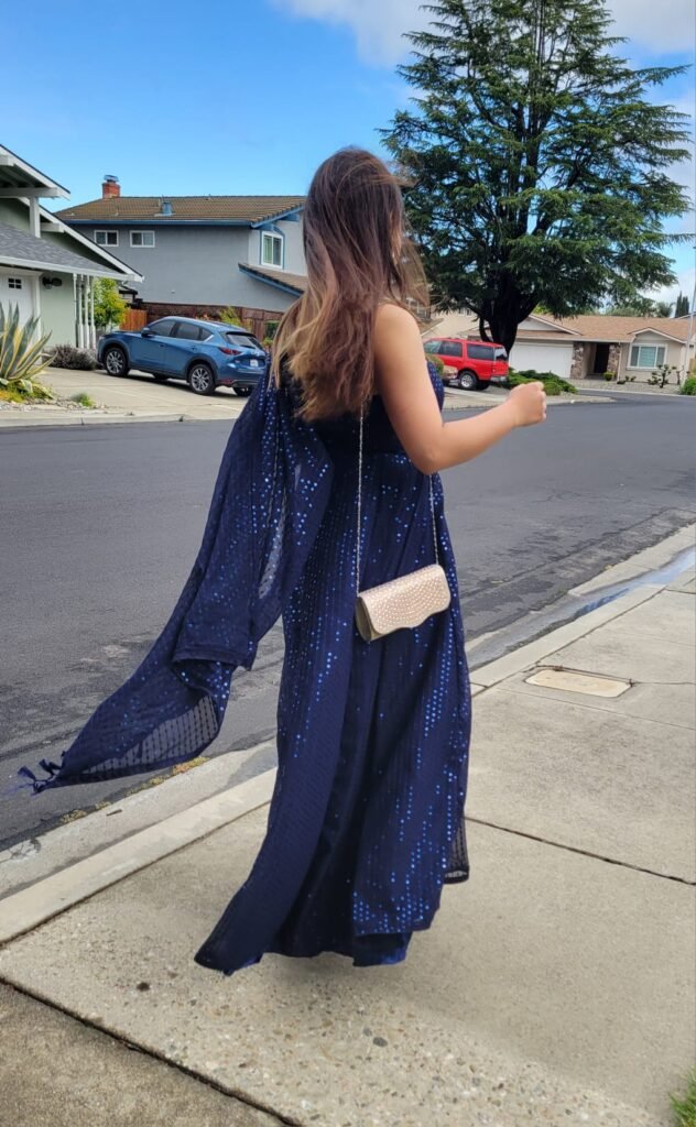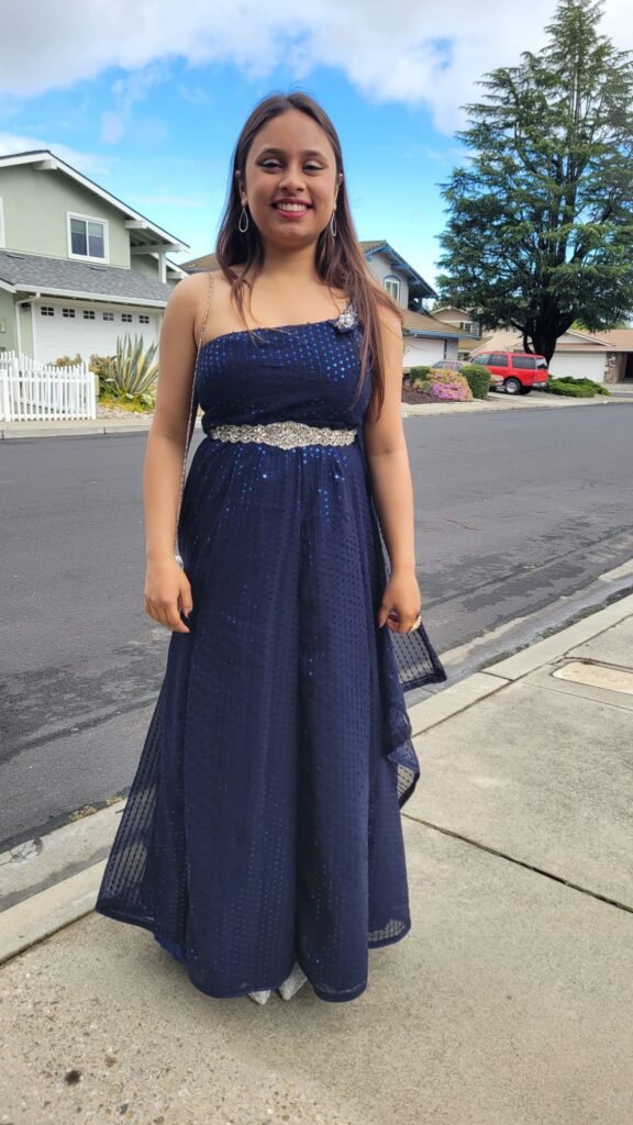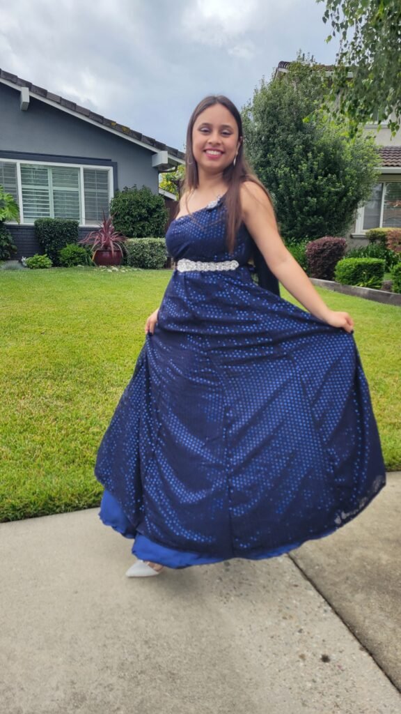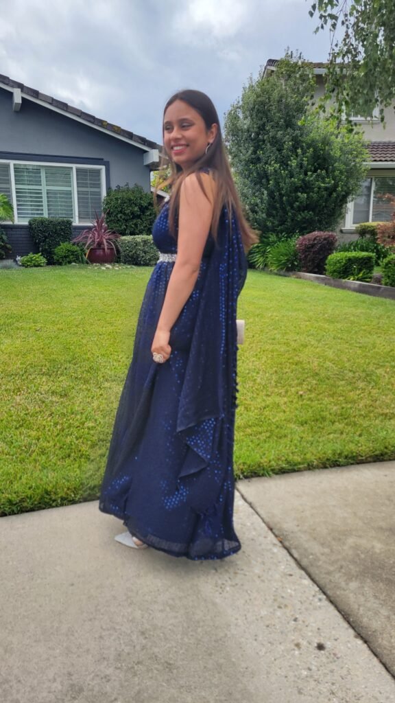 I designed and created a stunning Blue starry night themed saree inspired gown , and I’m incredibly proud of this piece. Every detail, from the fabric choice to the finishing touches, reflects my creativity, dedication, and love for fashion design. This dress is not just a garment — it’s a celebration of style, confidence, and personal achievement.